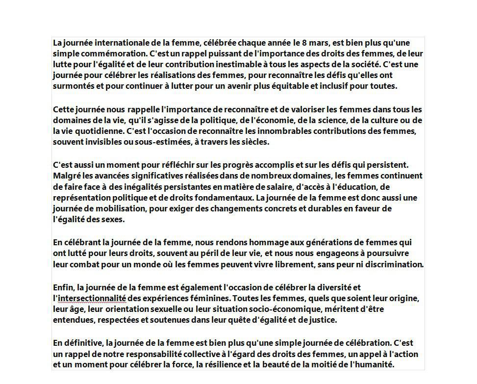 Aujourd'hui 8 Mars journée de la femme on compte sur tous