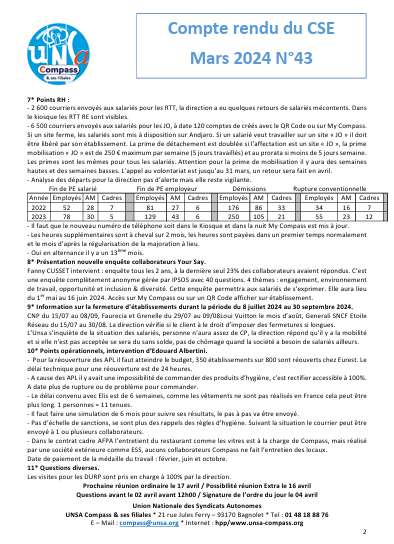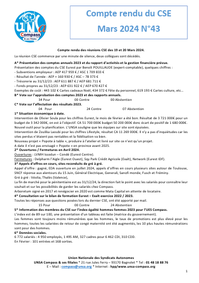 Compte rendu du CSE de Mars 2024