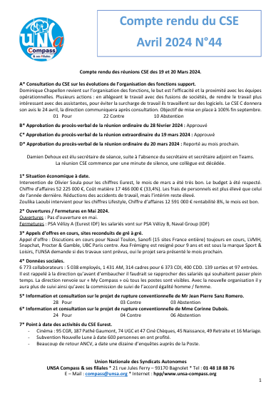 Compte rendu du CSE d'Avril 2024