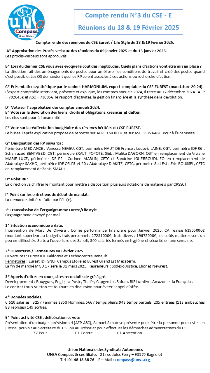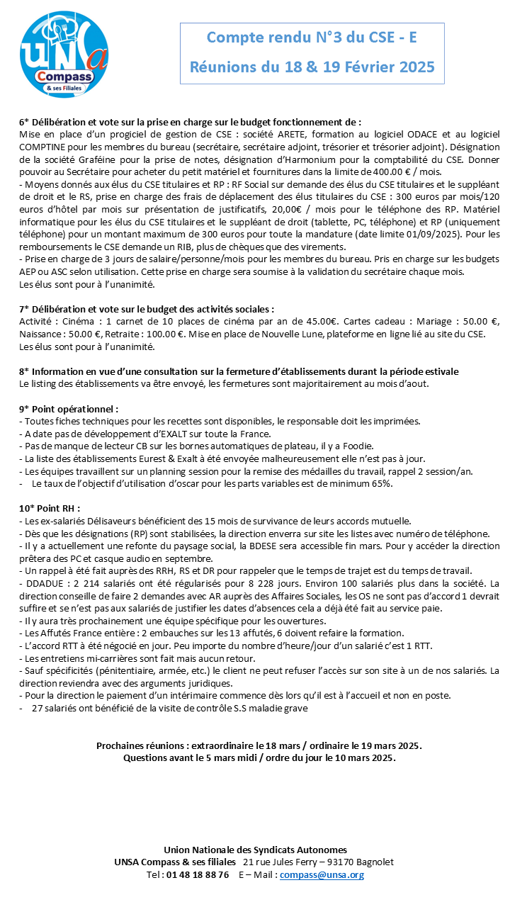 Compte rendu des CSE-E du 18 et 19 Février 2025