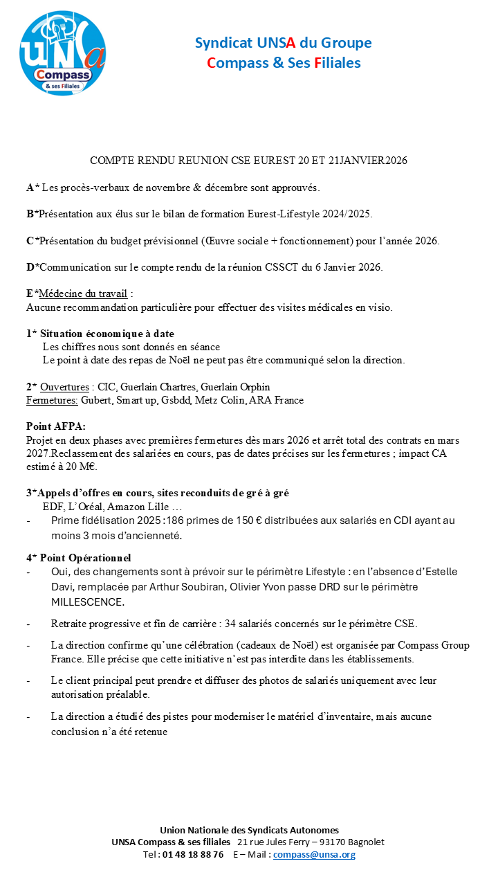 Compte rendu des CSE-E des 20 et 21 Janvier 2026