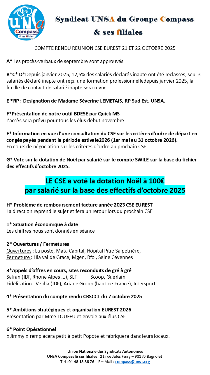 Compte rendu des CSE-E des 21 et 22 Octobre 2025
