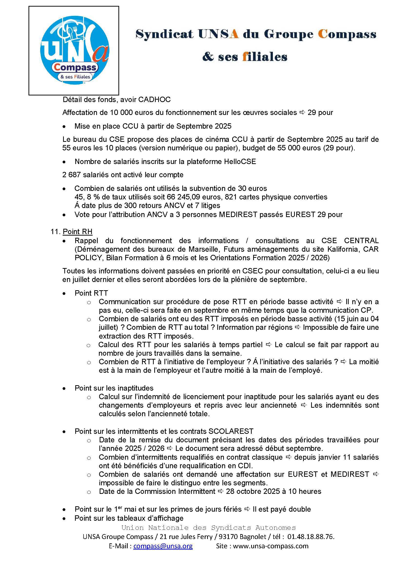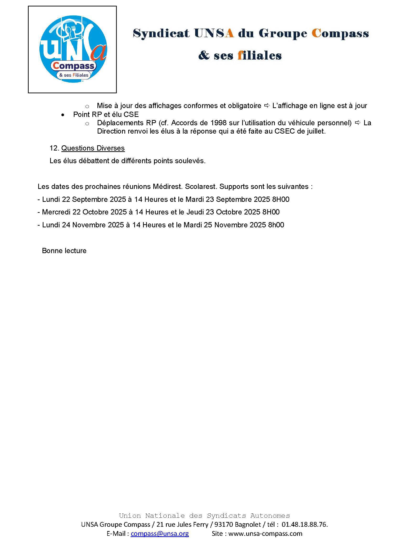 LETTRE D'informations du 23.24 Juillet 2025 CSE Médirest/Scolarest