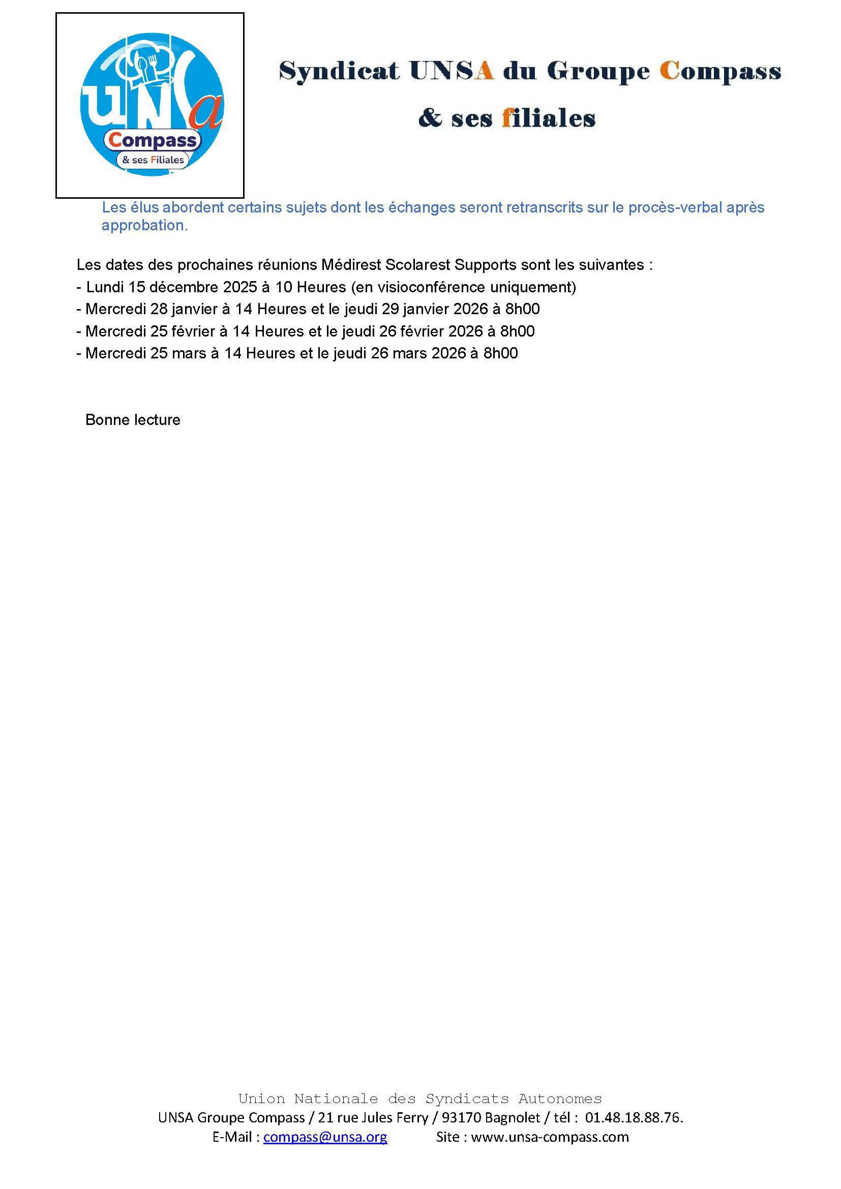 LETTRE D'informations du 24 . 25 Novembre 2025 CSE Médirest/Scolarest