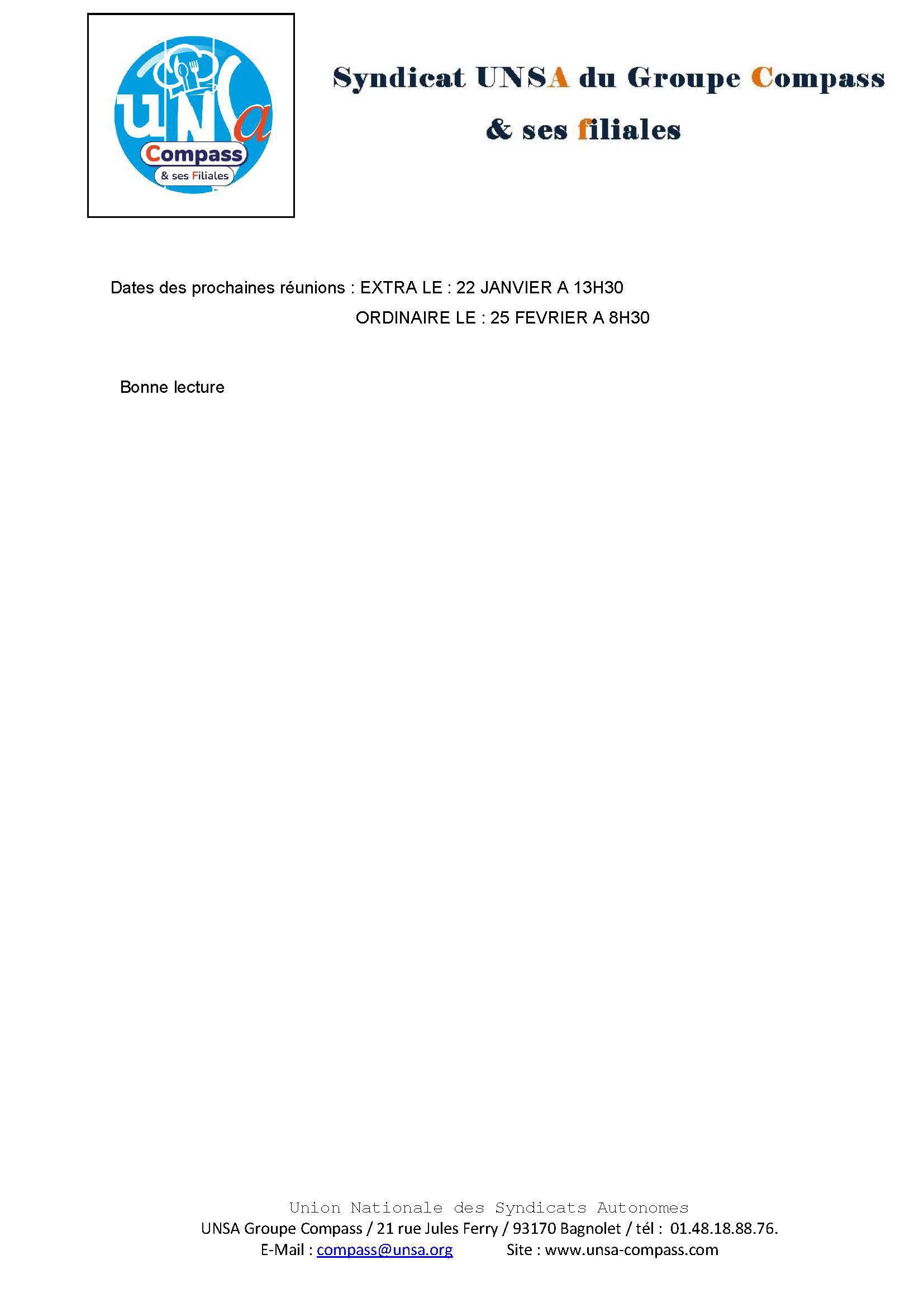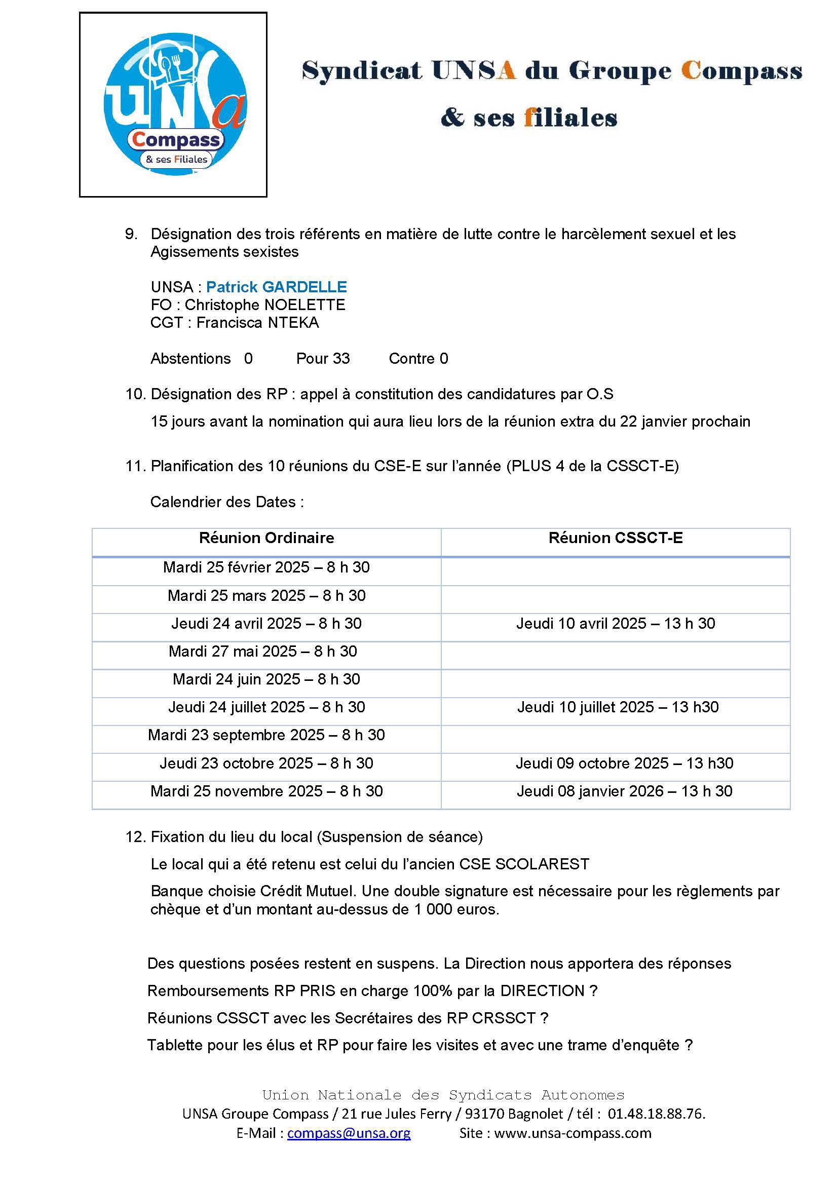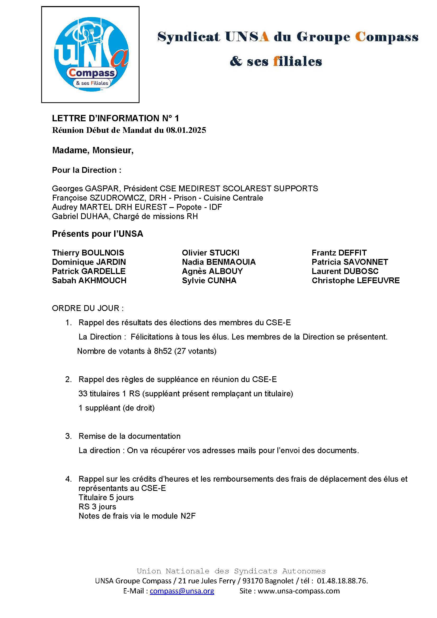 LETTRE D'informations du 8 Janvier 2025 CSE Médirest/Scolarest