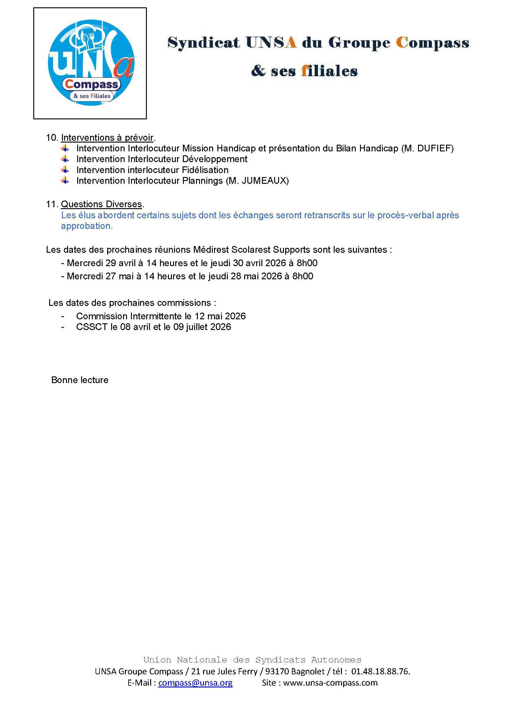 LETTRE D'informations du 25/26 Mars 2026 CSE Médirest/Scolarest